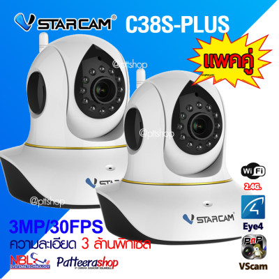 ขาย กล้องวงจรปิด IP CAMERA Vstarcam รุ่น C38S-PLUS [แพคคู่] WiFi 3 ล้านพิกเซล ชัดที่สุด ทั้งกลางวัน และกลางคืน มีวิธีติดตั้ง เป็นภาษาไทย ราคาถูกส่งฟรีทั่วประเทศ